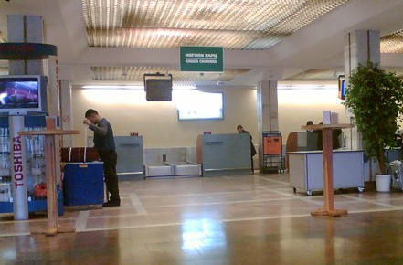 Restaurants gibt es im oberen Teil des Flughafengebäudes.