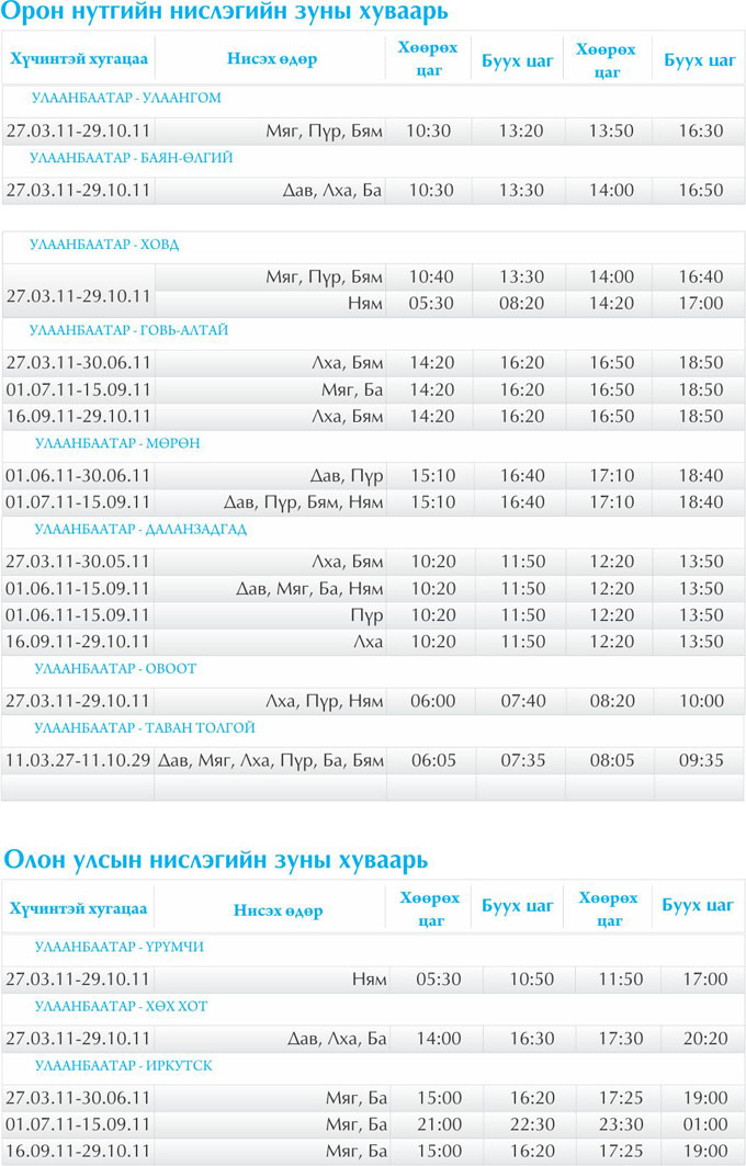 Flugplan Aero Mongolia